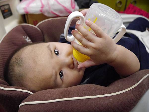 恩恩半歲時想說可以給他買個水杯練習喝水