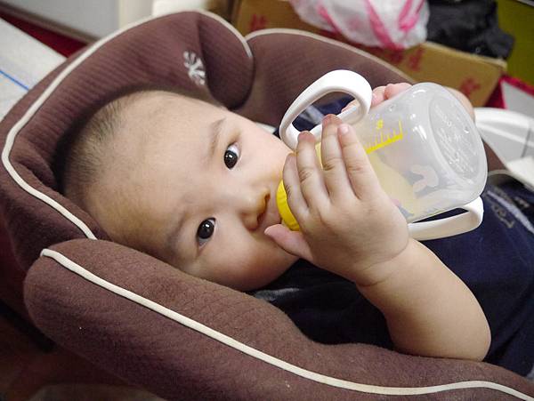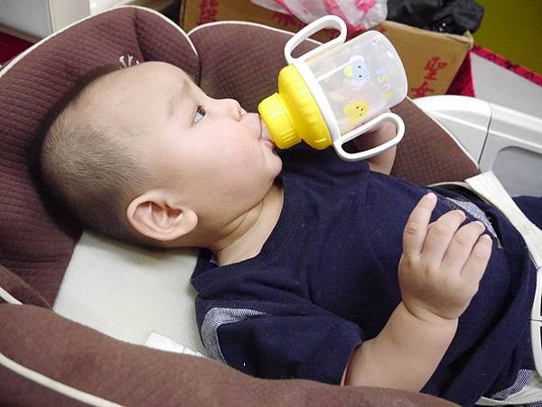 恩恩差不多1歲多我就換成吸管組給他他就自己會喝了