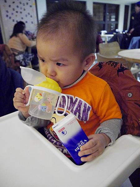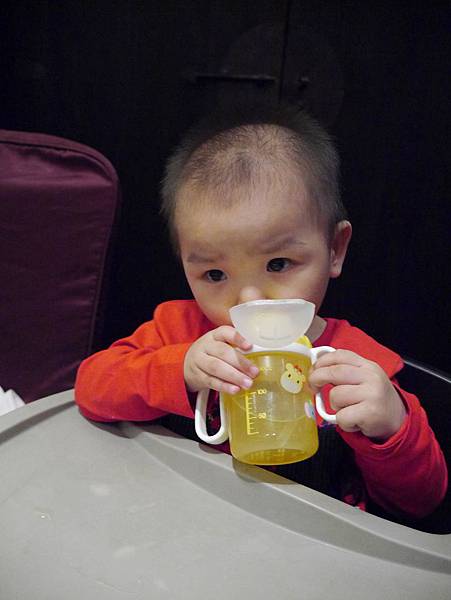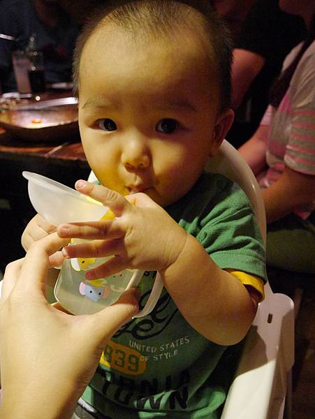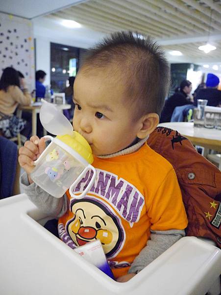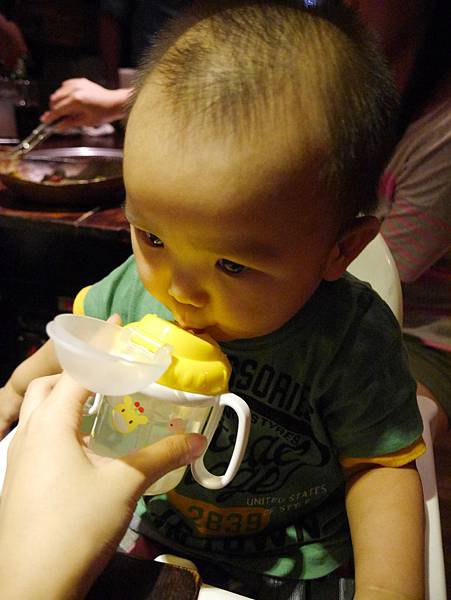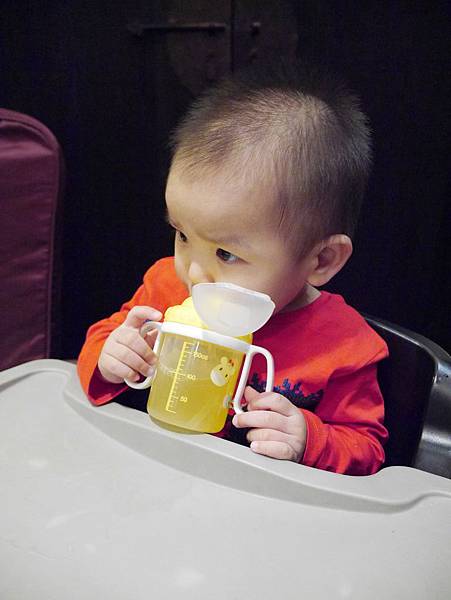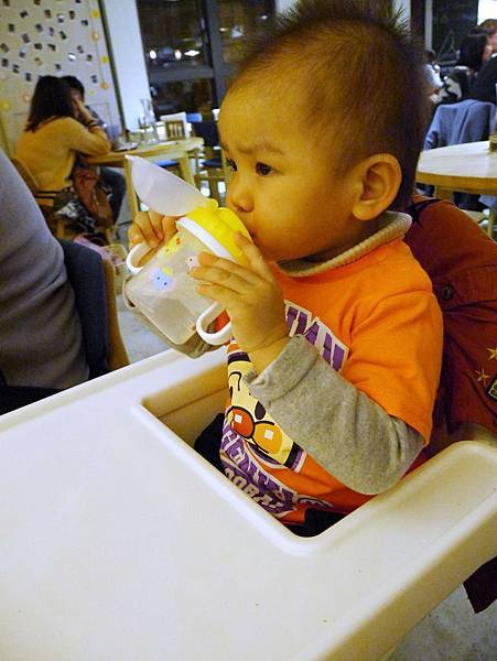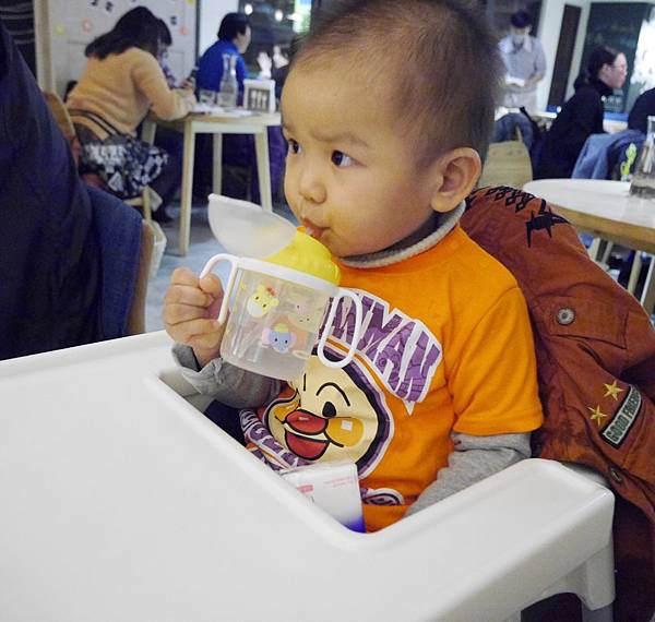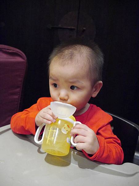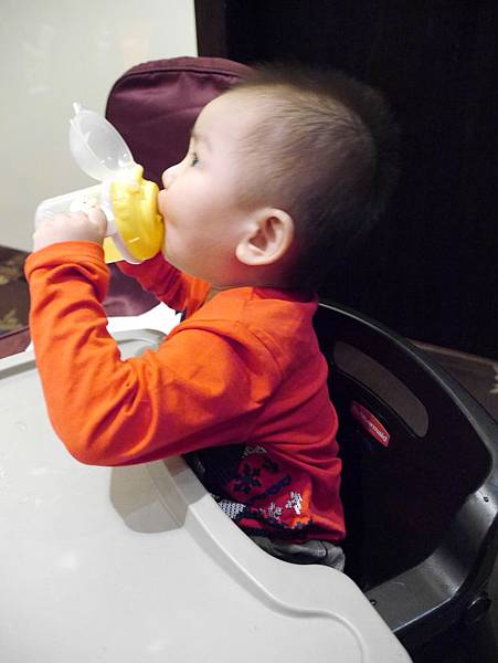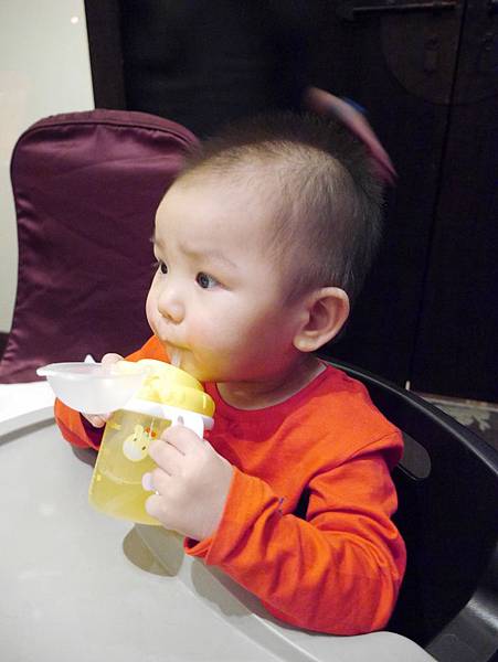 恩恩11個月大我們帶他出去吃飯,第一次換成吸管組