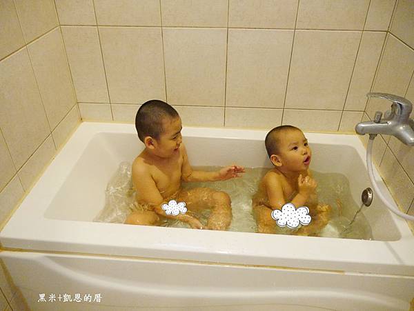 來礁溪就是要泡溫泉,一抵達就先在浴缸放水,讓小朋友進去玩